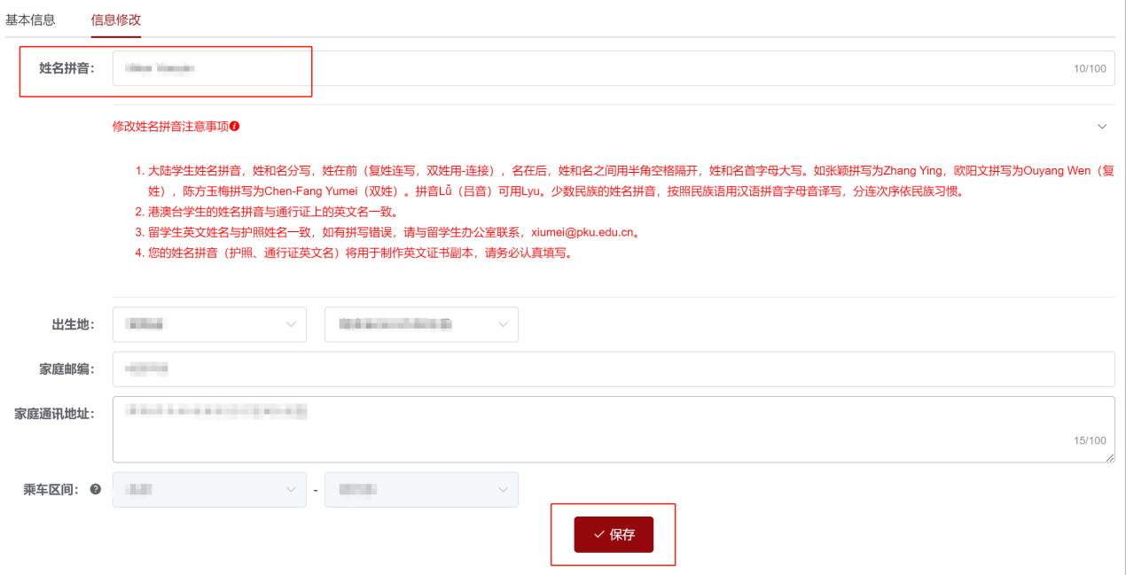 4.姓名拼音(护照、通行证英文名)将用于制作学位证书及英文副本,请务必认真修改。
